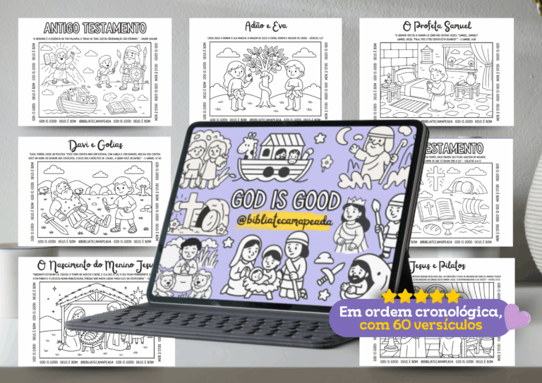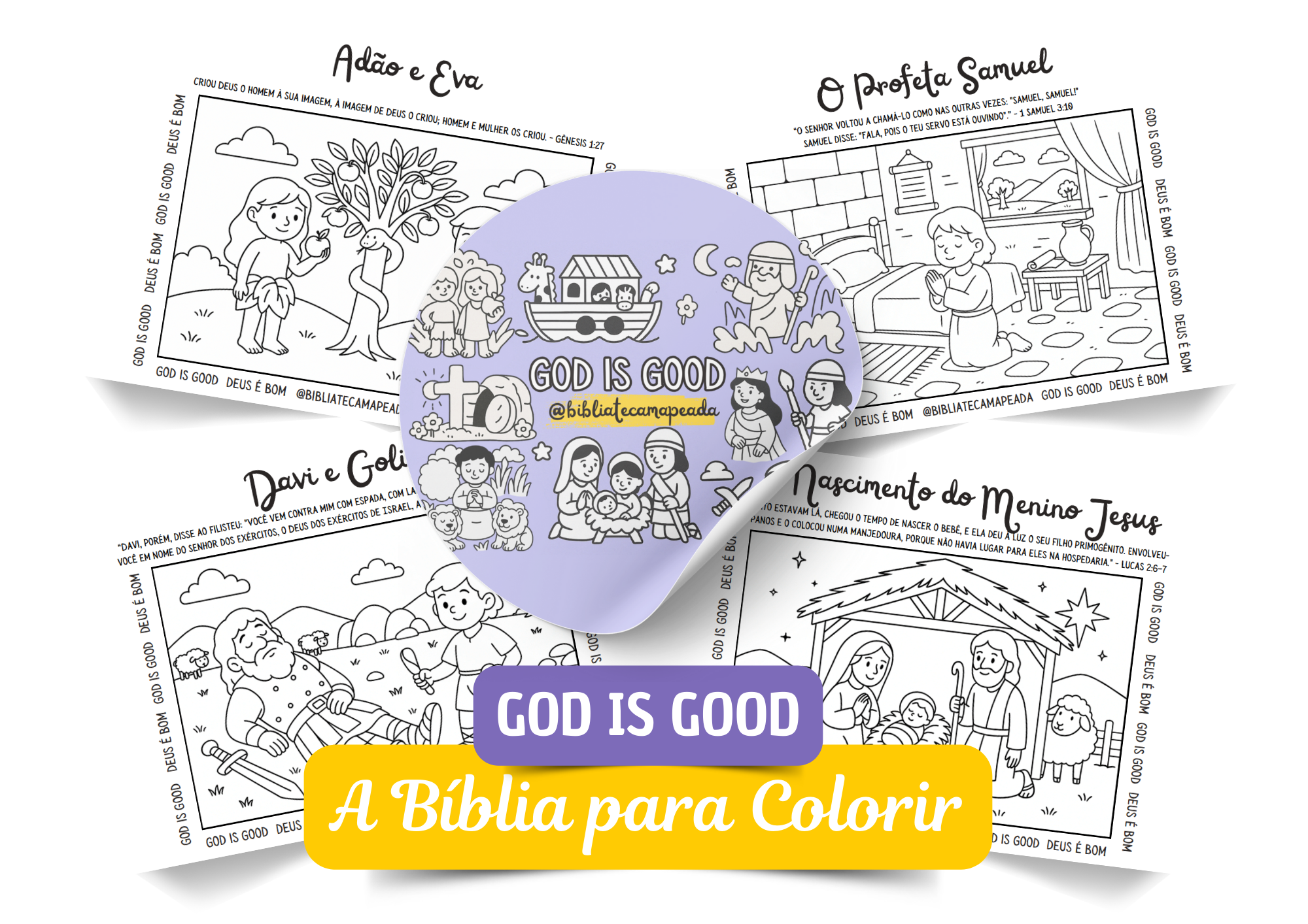 Inspirado no sucesso Bobbie Goods — um fenômeno que ganhou os lares com desenhos terapêuticos e acolhedores — nasceu o God Is Good: uma coleção cristã com 60 desenhos para colorir, do Antigo ao Novo Testamento.